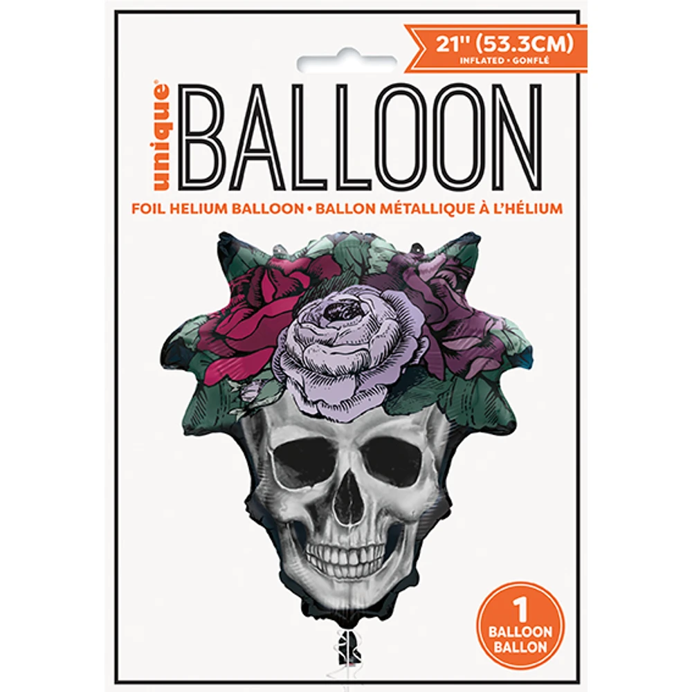21″ Floral Skull Balloon great for Halloween and Day Of The Dead