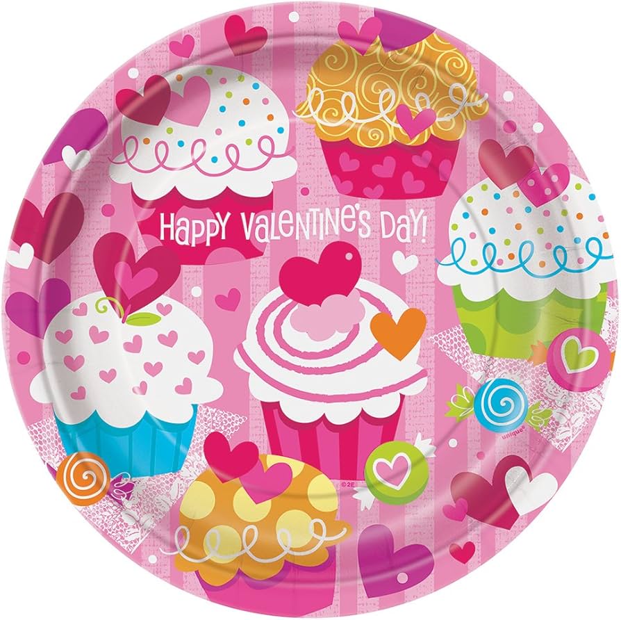7″ Cupcake Heart Plates 8ct