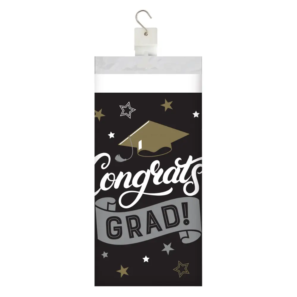 Congrats Grad Black Paper Table Cover 54″x96″