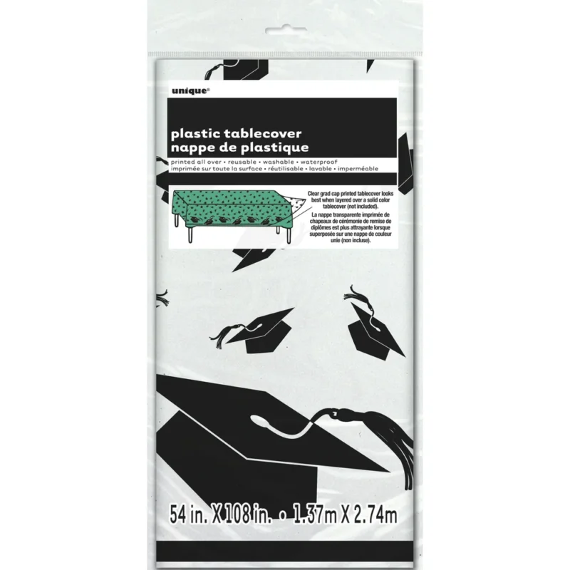 Congrats Grad Caps Gray Table Cover 54″x102″
