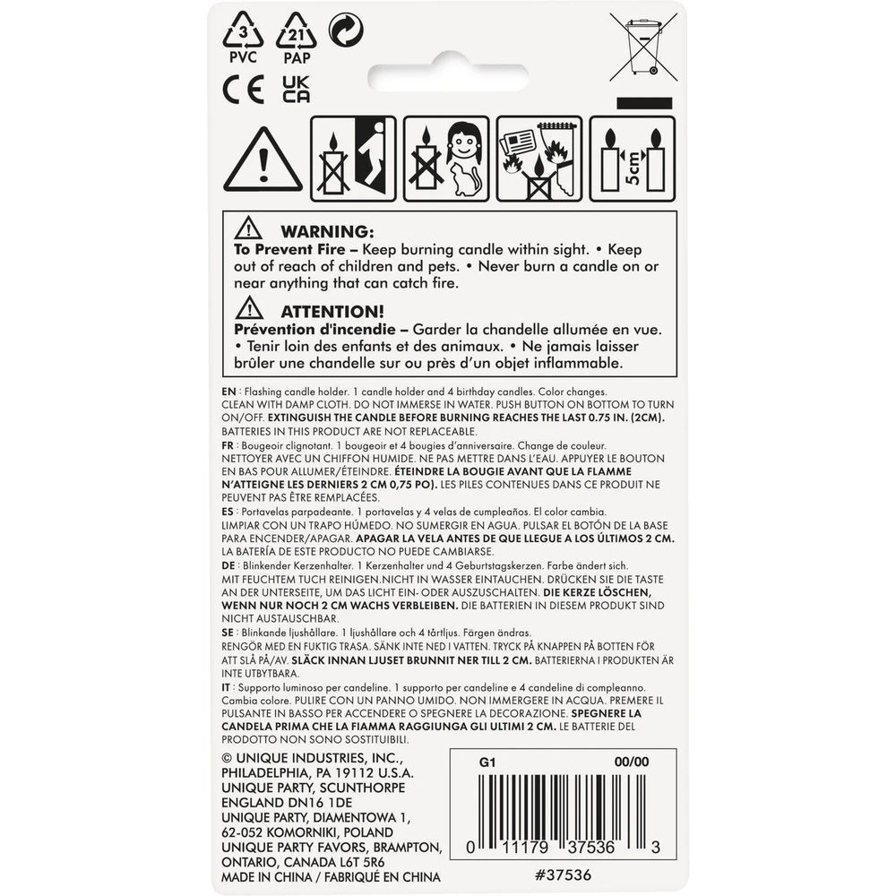 • Flashing LED candle holder and 4 coordinated birthday candles